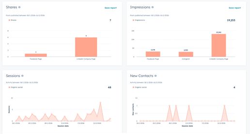 These reports utilise social publishing data, website traffic data, campaign reporting, revenue attribution and contact and lifecycle stage data (when set up correctly).
