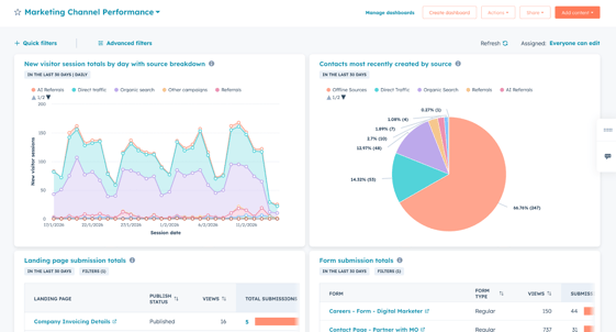 This is where HubSpot dashboards can save the day. By consolidating your marketing, service and sales data into consolidated and tailored dashboards, you can monitor performance in real time, optimise marketing campaigns faster and highlight metrics that actually matter.