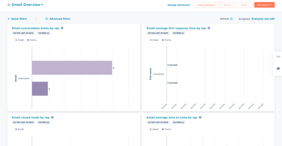 Email dashboards in HubSpot are used to gain a clear revenue-linked view on your email marketing performance. HubSpot is able to connect email activity to contact records, deals, lifecycle stages and revenue so that you have a good understanding on how emails impact your pipeline progression.