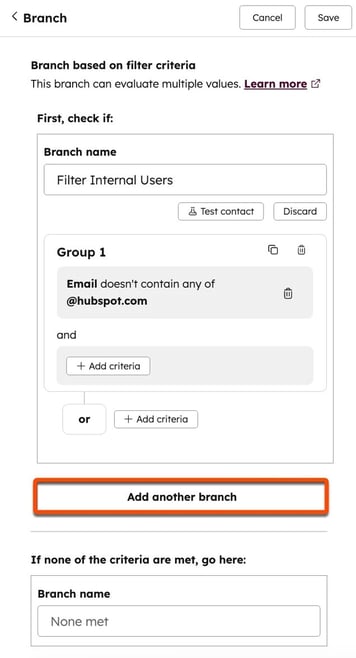 Grouping these together and using “none met” ensure only contacts who are none of the above will enroll into the workflow. It creates clear exclusions without complicated branches.