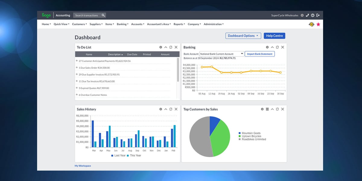 Sage One Accounting (now known as Sage Business Cloud Accounting) is a cloud-based accounting software designed for small to medium-sized businesses. The South African version is tailored to meet the specific accounting needs, tax laws, and financial regulations in South Africa.